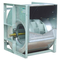 "Pittsburg lock" form housing manufactured in galvanised sheet steel for all sizes except 1250 and above, in mild steel finished with polyester powder coating. The wheel having backward curved blade is made of mild steel with polyester powder coating finish.